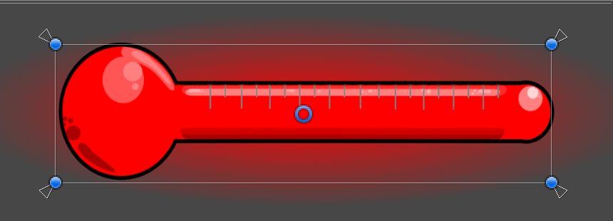 They are arranged in the inspector like below. The Thermometer was added as a UI Image but the Image component was then removed from the Thermometer. The Glow, WhiteBody, RedBody and ThermometerOverlay are all UI Images. Note that the order of these images in the editor is important otherwise the thermometer will not appear to function correctly.